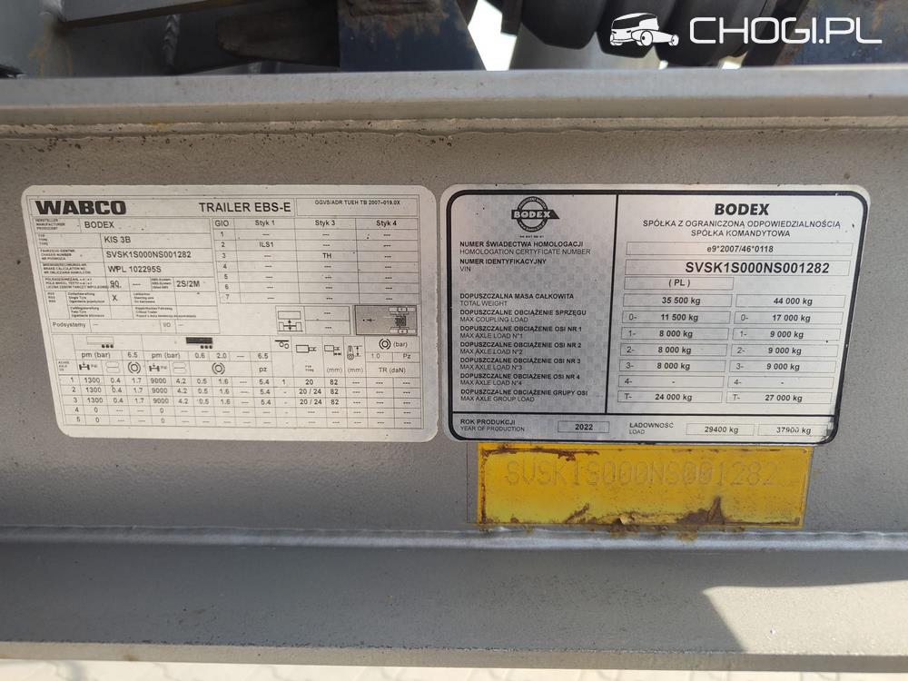 ABS, EBS, HAMULCE TARCZOWE, KLAPO – DRZWI, OŚ PODNOSZONA AUTOMATYCZNIE, ROZWIJANA PLANDEKA., SZYBER DO ZBOŻA, ZAWIESZENIE PNEUMATYCZNE
